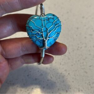 Stone Heart Bangle Bracelet
