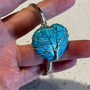 Stone Heart Bangle Bracelet