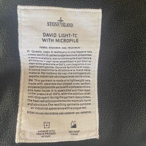 Stone Island David -TC style light weight canvas hooded down parka with anti-drop. Polyester jacket with micro-pile warm lining, zip front, 2 flap pockets, 2 zip pockets and glasses pocket in musk green color. BRAND NEW with authenticity tags attached! Men’s small or women’s large measuring 32’ across chest. Serious all weather jacket.