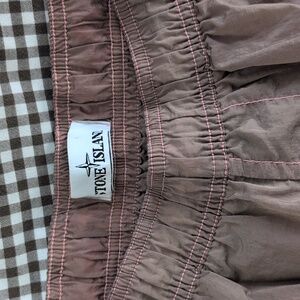 Swim shorts in Nylon Metal made from ECONYL® regenerated yarns, featuring pockets, an elasticated drawstring waistband, and mesh lining. Garment dyed with a double-color recipe.