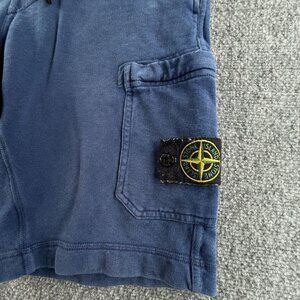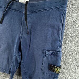 Stone Island Sweat Shorts Blue Drawstring Waist Knit Medium Cotton Designer