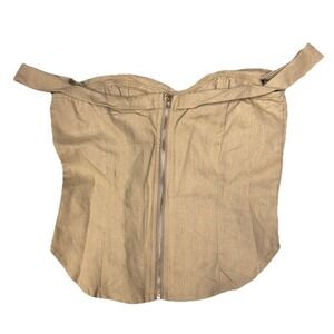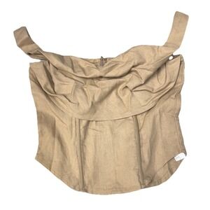 Stone Linen Draped Bardot Corset US Size 4 Scandinavian Minimalist Old Money
