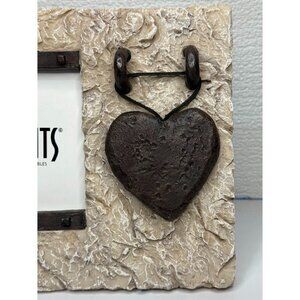 Beautiful Picture frame with a stone look and a metal heart on it's side.