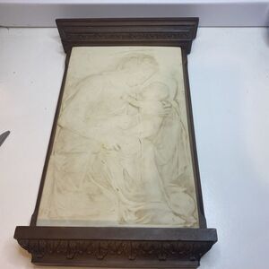 Stone Madonna and child 3D art wall hanging With faux wood based