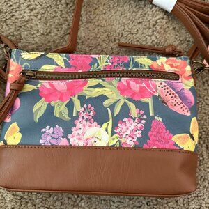 New with tags Stone Mountain Beau Jarden Washed EW 4 Bagger in Denim/Tan. Has front & rear zipper pockets. Comes with removeable straps that can convert the bag into 4 different ones. Can be used a clutch, short shoulder, wristlet or crossbody. Has an inside zipper pocket & 1 slip pocket. Made from bonded leather. Is approx. 9 inches wide & 6 1/2 inches long. Comes from a smoke & pet free home