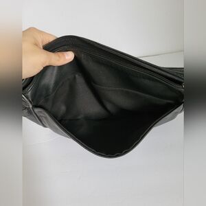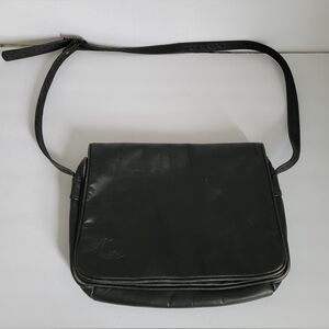 Stone Mountain Black Leather Fold over Flap Front Adjustable Crossbody Bag