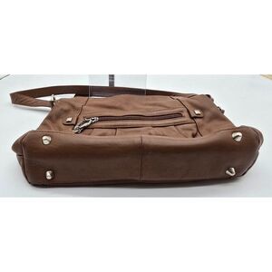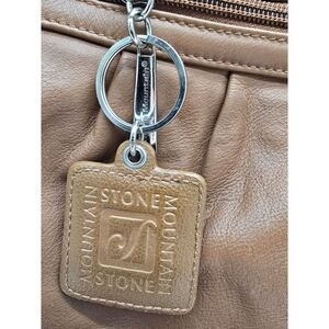 Stone Mountain Brown Leather Shoulder Bag With Keychain Accent & Zipper Pocket
