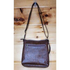 Stone Mountain Crossbody Brown Purse Removable Strap 5 Zip Slip Pockets