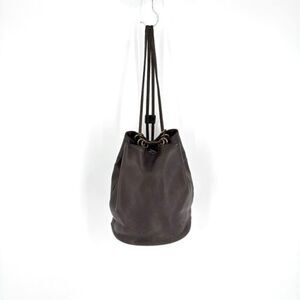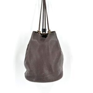 Stone Mountain Dark Chocolate Brown Pebbled Leather Brass Grommet Bucket Bag