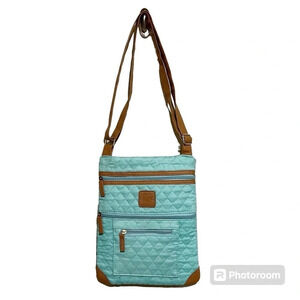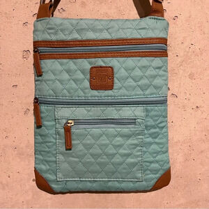 Stone Mountain Lockport Light Blue Crossbody Shoulder Bag Purse Zippers Pockets