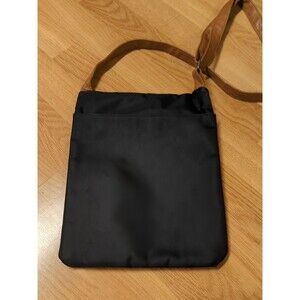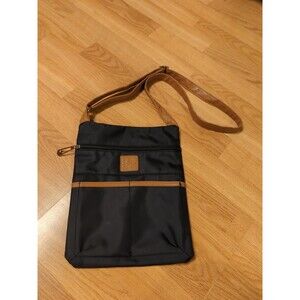 Stone Mountain Shoulder Handbag Crossbody Black Tan Trim Nylon Zip