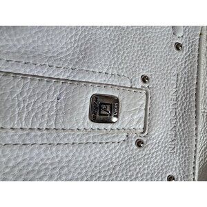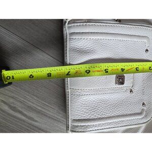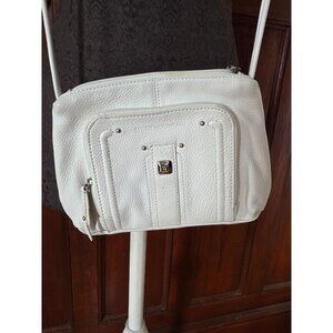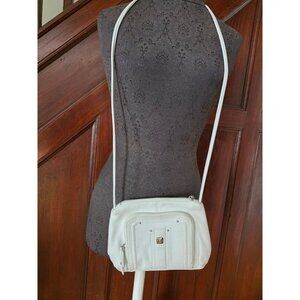 Stone Mountain White Leather Crossbody Bag Adjustable Front Zip Pocket