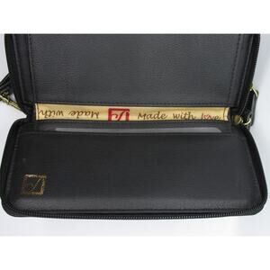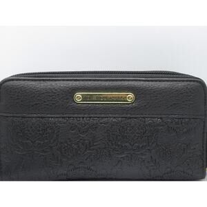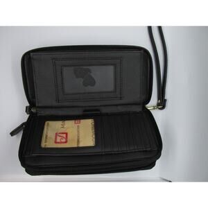 This Stone Mountain wallet is a must-have for any bohemian or 90s enthusiast. The paisley pattern and brown leather give it a vintage vibe, while the zip-around style and checkbook feature make it practical for everyday use. The wallet boasts a strap and zipper for added security and is accented with the Stone Mountain logo. Perfect for any woman looking for a stylish accessory to add to her collection.
