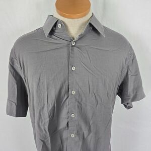 Stone Rose Button Down Shirt Men's M Gray Solid Short Sleeve Collard Casual