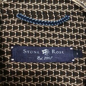 Stone Rose bull dog (?) print button up shirt. Size 3 or medium. Good used condition no flaws.