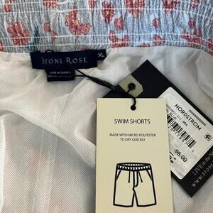 Stone Rose Coral Blue Hummingbirds Floral Drawstring Summer Swim Shorts XL NWT