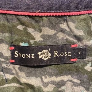 Navy Blue Mens Stone Rose Short Sleeve Shirt in pristine condition. Only worn once, like brand new! Collar has blue & green camouflage print and 4 buttons down the neck. Size 7 - XL