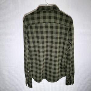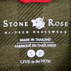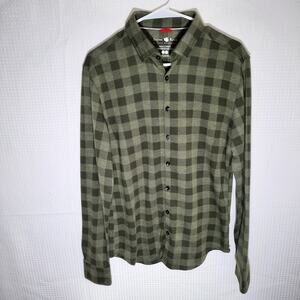 Men’s Stone Rose “Hi-Tech Dresswear” long sleeve shirt in green plaid. Features lightweight stretch tech fabric, black buttons, and a modern fit. Size Small (SP).