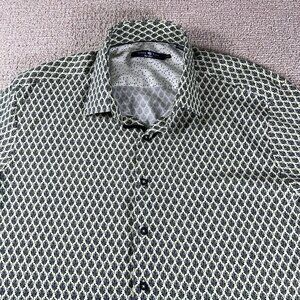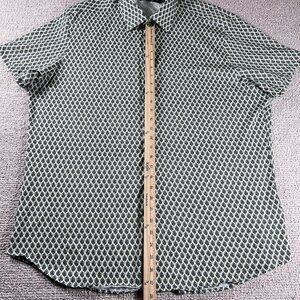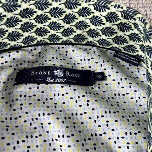 Stone Rose Tree Pattern Button Up Short Sleeve Shirt Yellow Blue Men's Size 3XL