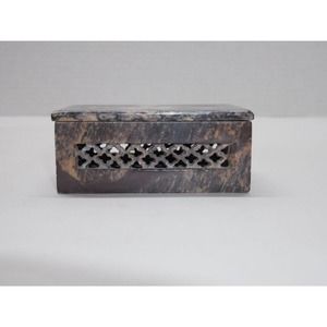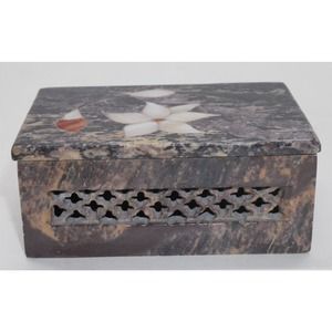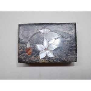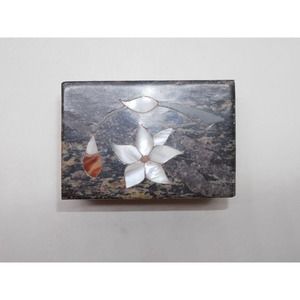 Stone Trinket Box Mother of Pearl Floral Inlay Made In India 3" x 2"