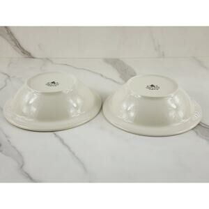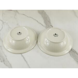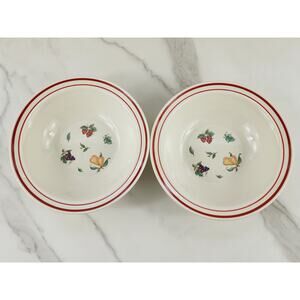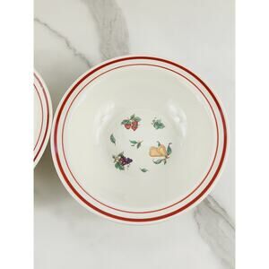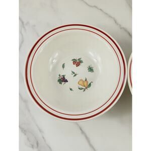 Stone Ware Cereal Bowl 7" Fruit Design Strawberry Grapes Pear Cream Red Trim x2