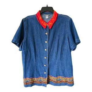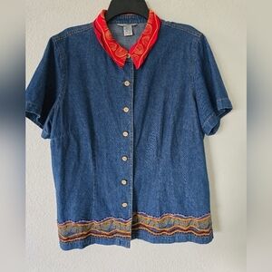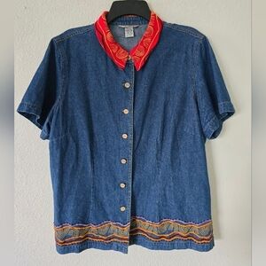 Stone bridge Demin Shirt 1XL Plus Vintage Blue ShortSleeve Chambray Embroidered