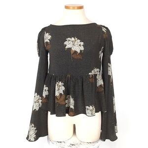 Stone cold fox Boho Bell Sleeve Floral Top 🤎🖤 Size XS
