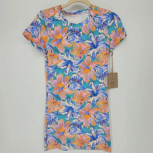 Stone fox swim tropical lily dress floral blue orange soft stretchy small