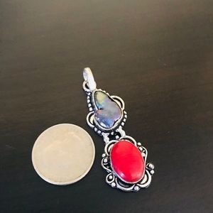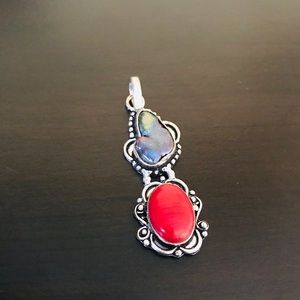Handmade stone pendant with labradorite and coral stone in sterling silver