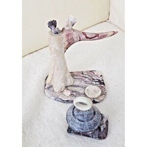 Stone sculpture tree birdhouse marble 6x3 bird watcher outdoorsy ornithology