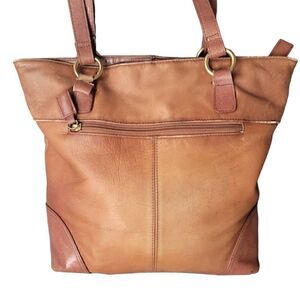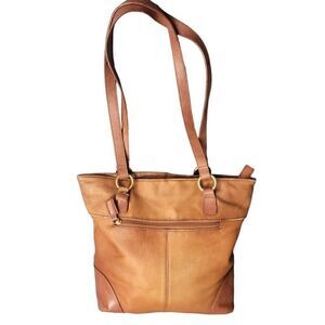 Stone Mountain Tan Camel Leather Medium Tote Top Handle Shoulder Bag