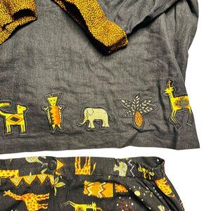 This delightful two-piece ensemble showcases a vivid African safari motif, blending playful animal illustrations with intricate tribal patterns. The set features a relaxed-fit top and matching pants, crafted for comfort and style. The vibrant design evokes the spirit of adventure, offering wearers a unique way to express their love for wildlife and cultural artistry.