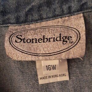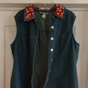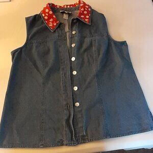 Stonebridge Blue Denim Vest, Sleeveless w/Red Floral Collar, Size 16W
