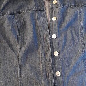 Very nice! Stonebridge blue denim vest featuring a red floral collar, MOP buttons and belt loops behind. Size 16W. The measurements are: