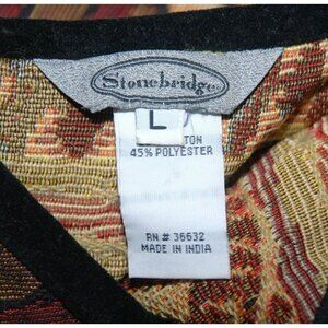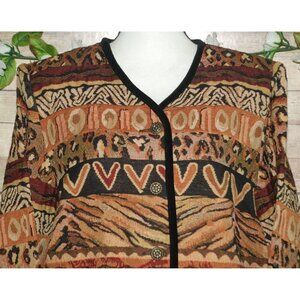 Stonebridge Brown Tapestry Button Up Jacket Size L Animal Print Velvet Trim