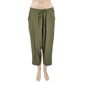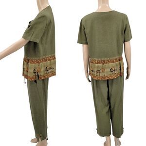 Stonebridge Vintage Green Linen Animal Print Safari Matching Set Blouse Trousers