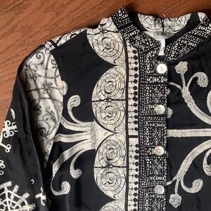 Stonebridge Vintage Silk Longline Asian Inspired Button Down Top Size Medium