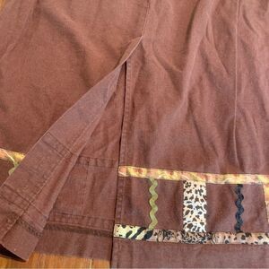 Stonebridge Brown Linen MIDI Skirt Ric Rac Animal Print Teacher XL