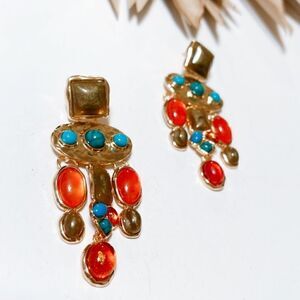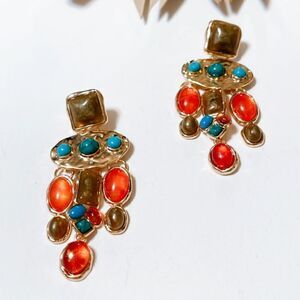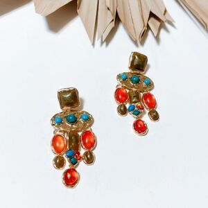 Oval dangle earrings in gold tone multi color