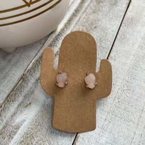 Pink stone stud earrings with silver plated setting. Zinc alloy and nickel free.