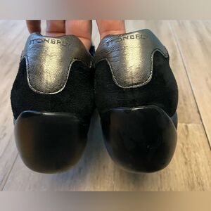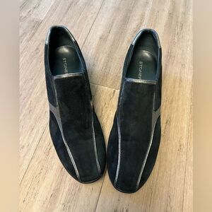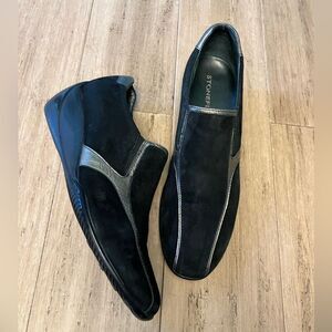 Stonefly Italian quality suede black with pale gold leather detail women’s shoes. 39/8.5 new $150