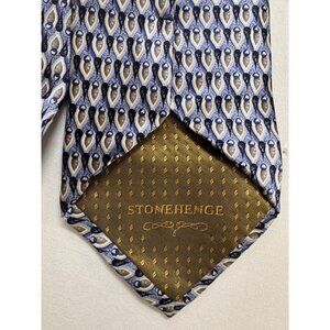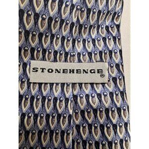 Stonehenge Men’s 100% Silk Necktie Handmade Tie Made In USA Navy Blue Geometric