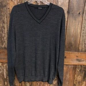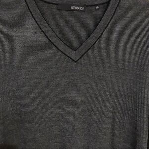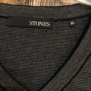 Stones Men’s Sz XL Gray Black Stripe V-Neck Wool Long Sleeve Sweater