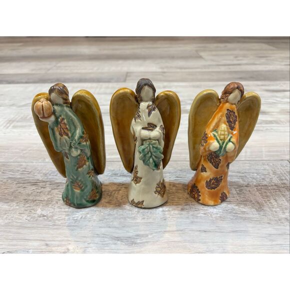 Stoneware Angel Figurines Fall Autumn Decor Set of 3