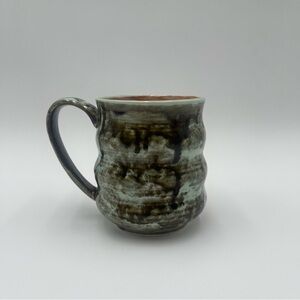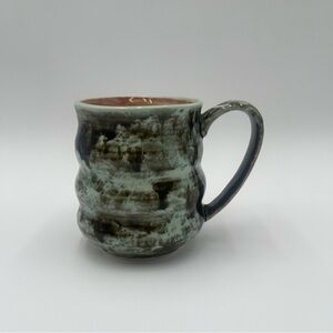 Handmade, hand painted stoneware mug. Large mug with Ripple detailing. Features a unique, organic glaze design with a drippy, textured appearance. Item is in