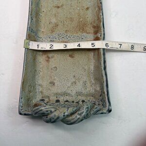 Stoneware Handmade Tray With Twisted Handles & Earthy Glaze Finish