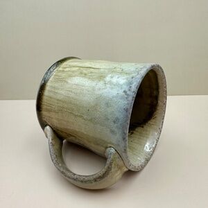 Mug: Hand-thrown stoneware, green dripped glaze, sturdy handle