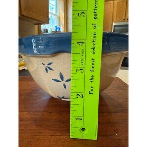 Stoneware Pottery Bowl Serving Dish Cream/Blue inside Blue Flowers Cottage Core