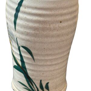 Stoneware Pottery Vase Handpainted Wild Grass Flowers Ribbed 8"