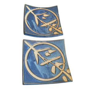 Stoneware Sushi Soy Sauce Curved Small Dish Dipping Trays (2) VTG Art Pottery